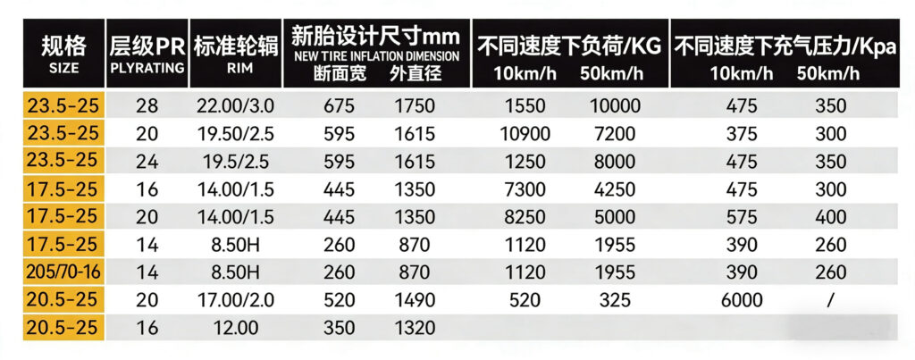 The main functions of construction machinery tires include carrying vehicle loads, providing friction with the ground, shock absorption and cushioning.It is usually used in construction vehicles such as loaders, excavators.bulldozers and road rollers.